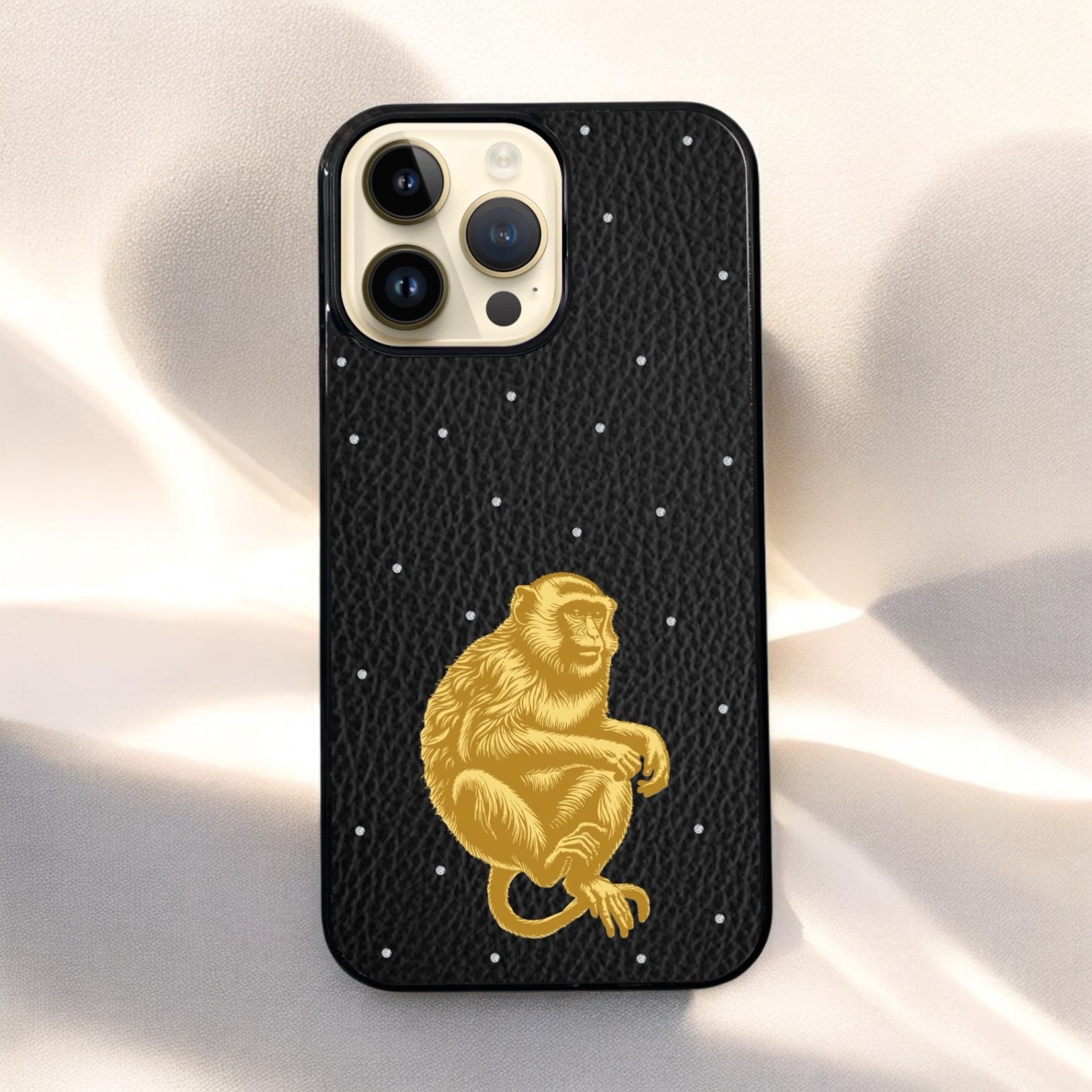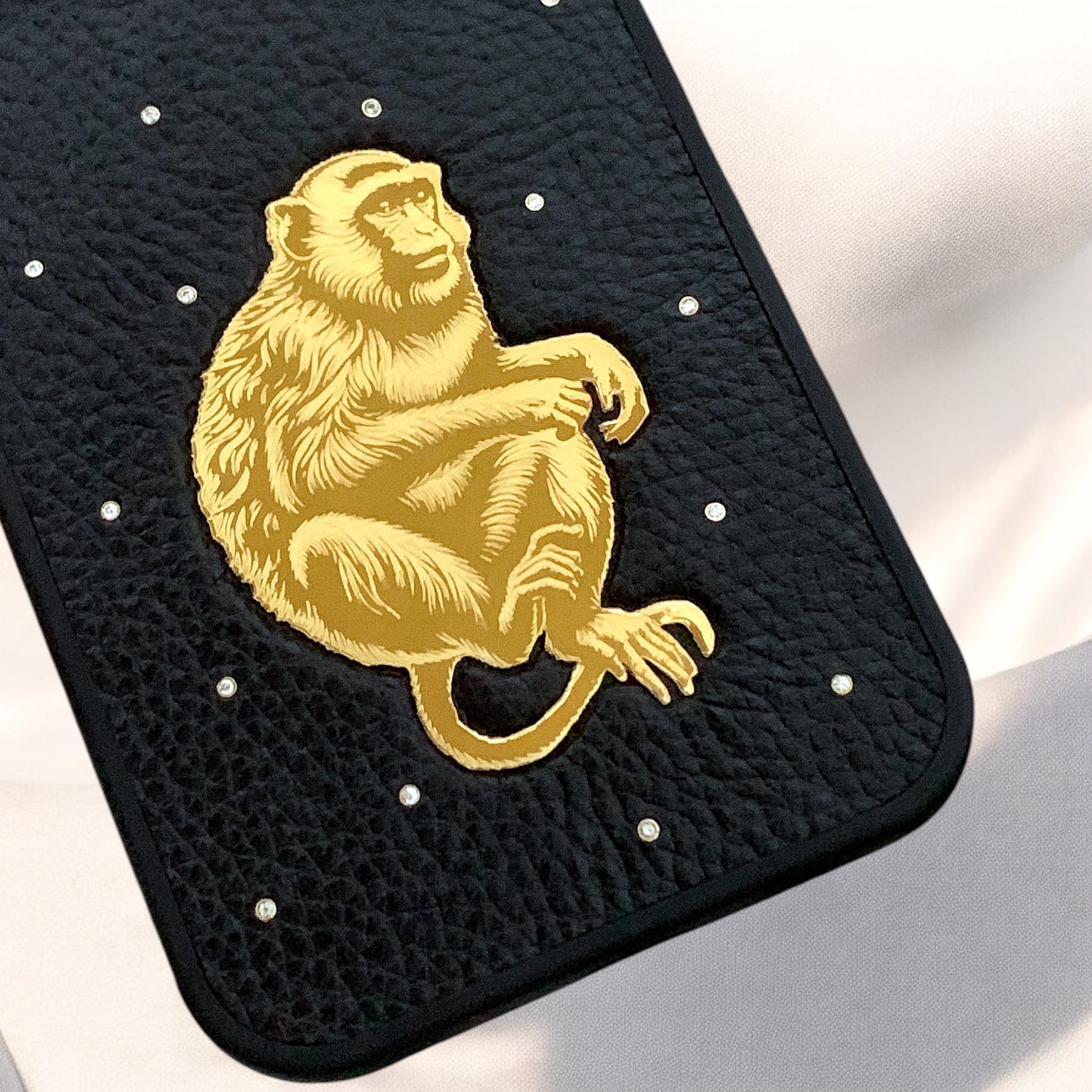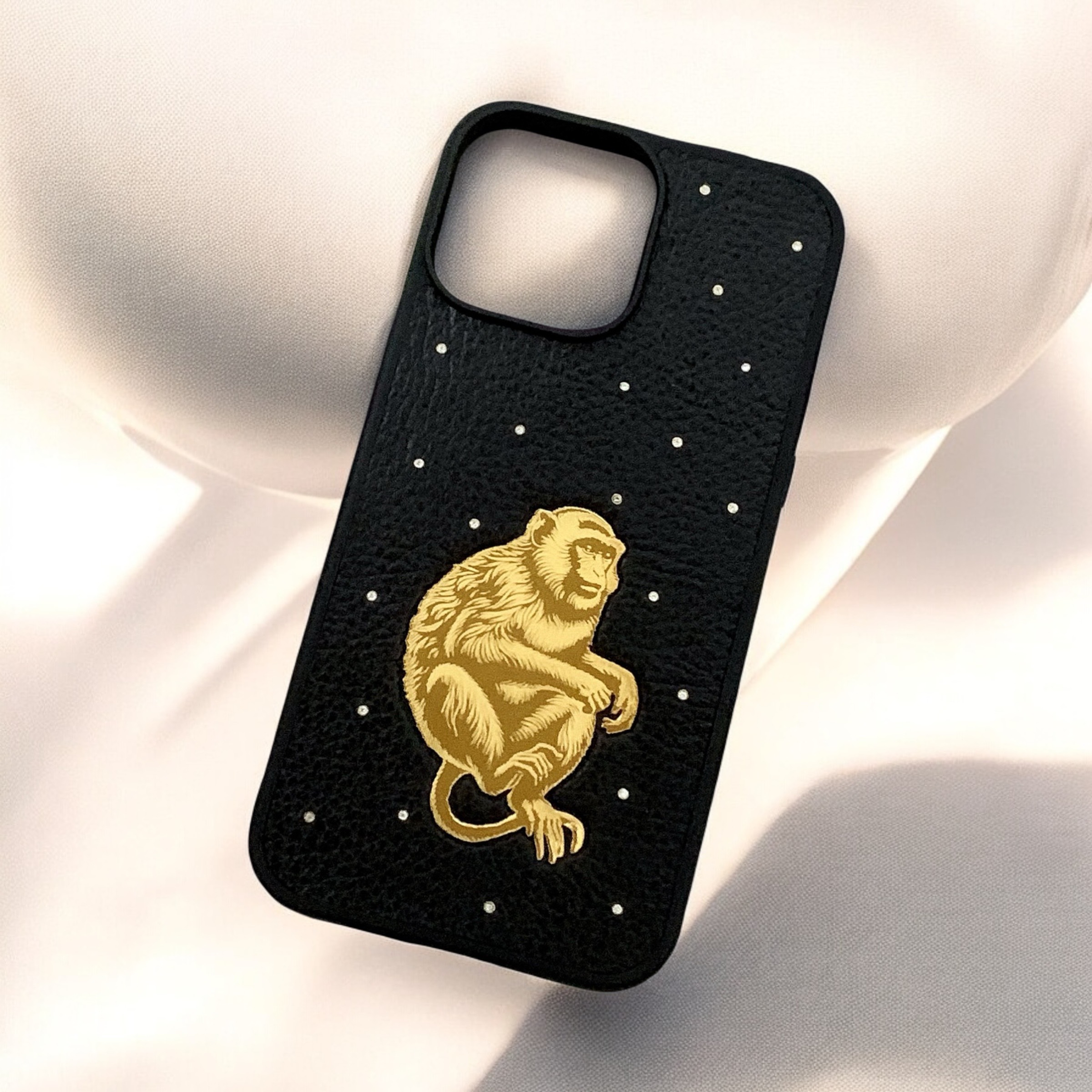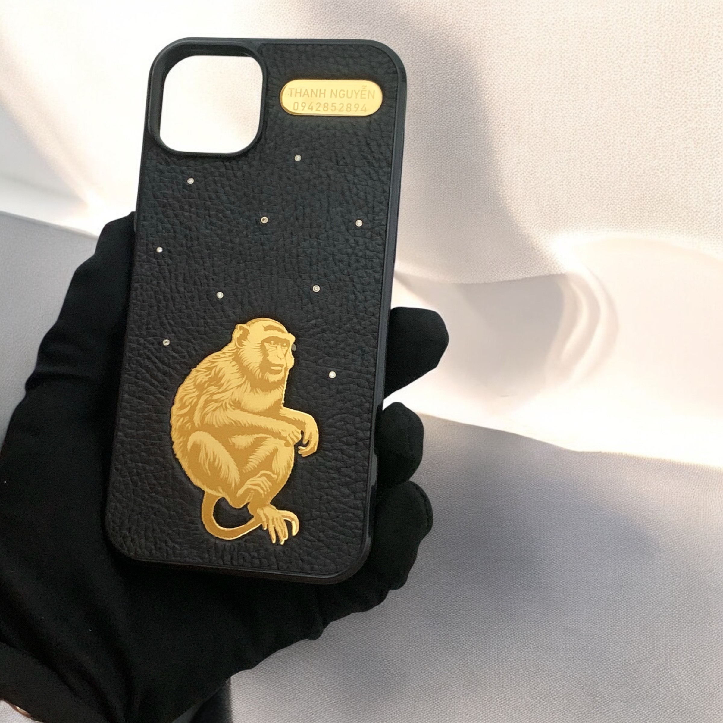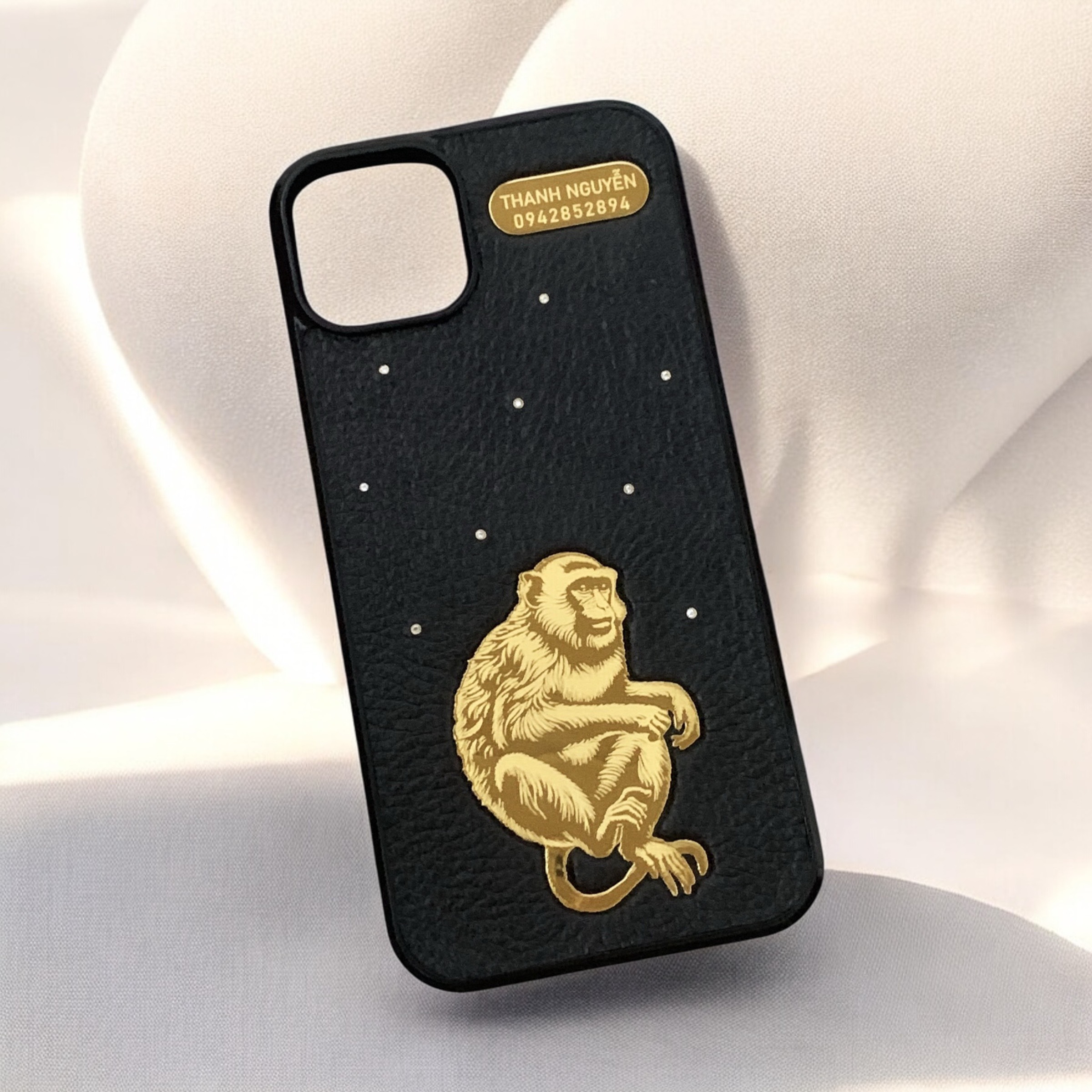 ✔️ Chất liệu da: Da bò thật 100% phủ trên bề mặt lưng của ốp. Đi kèm là những viên đá nhân tạo 1,5 ly được đính trên bề mặt da tạo thêm điểm nhấn cực kỳ sang trọng. Có 3 màu da để lựa chọn theo sở thích: