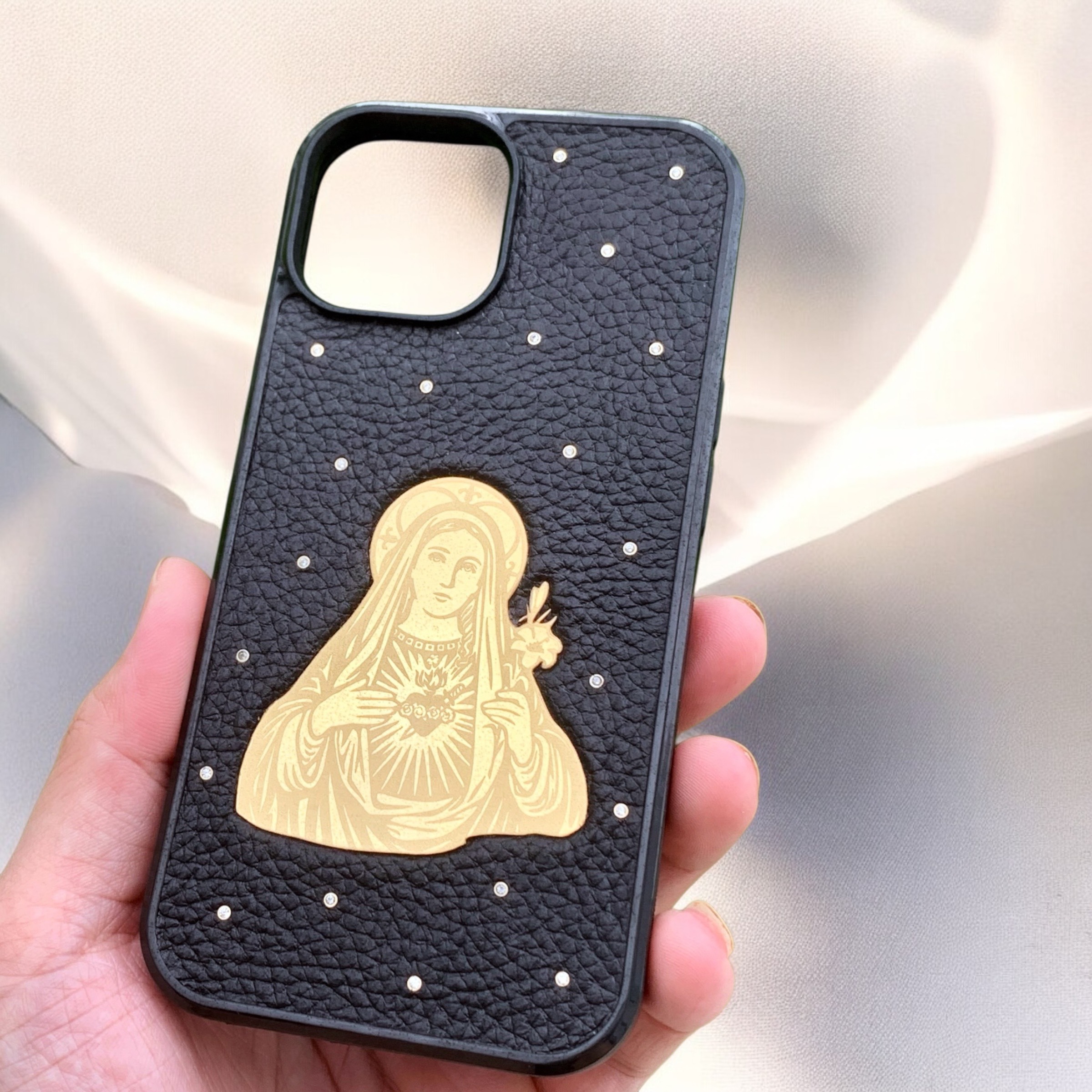 ✔️ Chất liệu da: Da bò thật 100% phủ trên bề mặt lưng của ốp. Đi kèm là những viên đá nhân tạo 1,5 ly được đính trên bề mặt da tạo thêm điểm nhấn cực kỳ sang trọng. Có 3 màu da để lựa chọn theo sở thích: